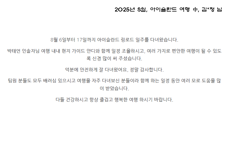 안녕하세요, 당신의 특별한 여정을 완성할 로컬 전문 에이전트 Teon 입니다.